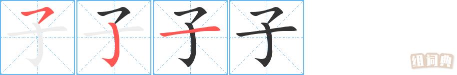 怎么写 此字《说文解字》篆形作「」,象形。大徐本注引李阳冰曰:「子在襁緥中足并也。」楷书写法:「了」中加一横。「仔」、「好」、「李」等字偏旁同此。若为左偏旁时,横笔斜挑,如︰「孔」、「孩」等字。