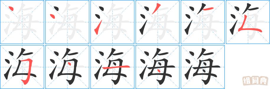 邻接大陆而小於洋之水域。如:「南海」、「黄海」、「地中海」。《说文解字.水部》:「海,天池也。以纳百川者。」《庄子.秋水》:「今子蓬蓬然,起於北海。蓬蓬然,入於南海,而似无有,何也?」