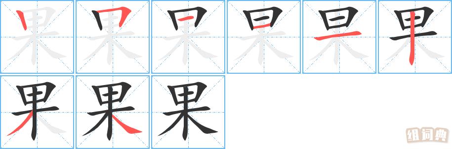 怎么写 此字《说文解字》篆形作「」,木实也。从木,象果形在木之上。楷书写法:中竖一贯而下,不钩,撇、捺写法同「木」。「巢」、「棵」、「猓」、「窠」、「裸」、「课」、「踝」等字偏旁同此。若为左偏旁,捺笔改点,如︰「伙」、「颗」等字;「裹」字因一字不二捺,亦然,唯点不接中竖笔。