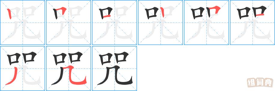 怎么写 上作二「口」,下作「几」。此字或作「呪」,本典收为异体字。